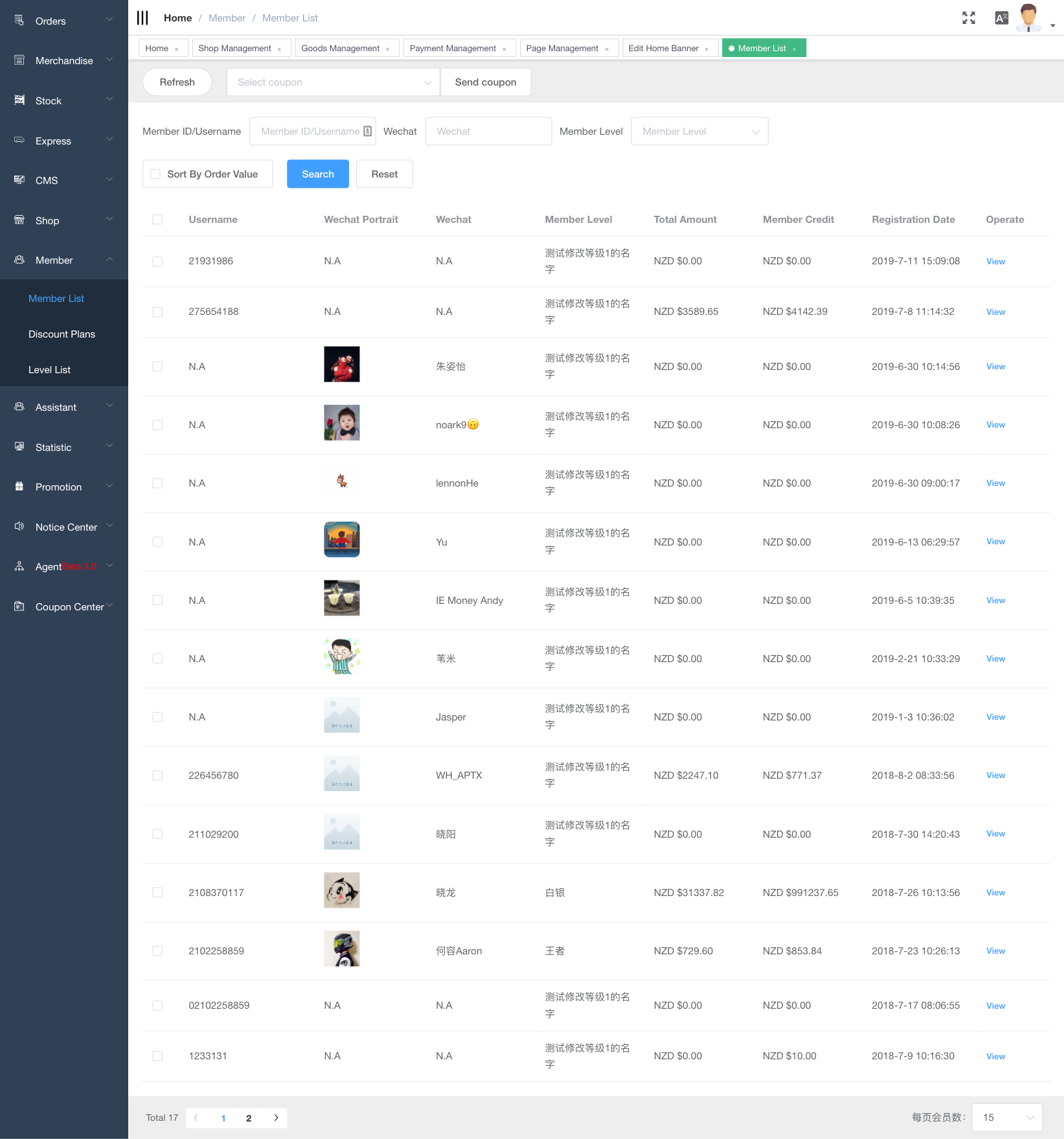 This page display members list with brief detail. Click 'view' in the right to view full member detail.