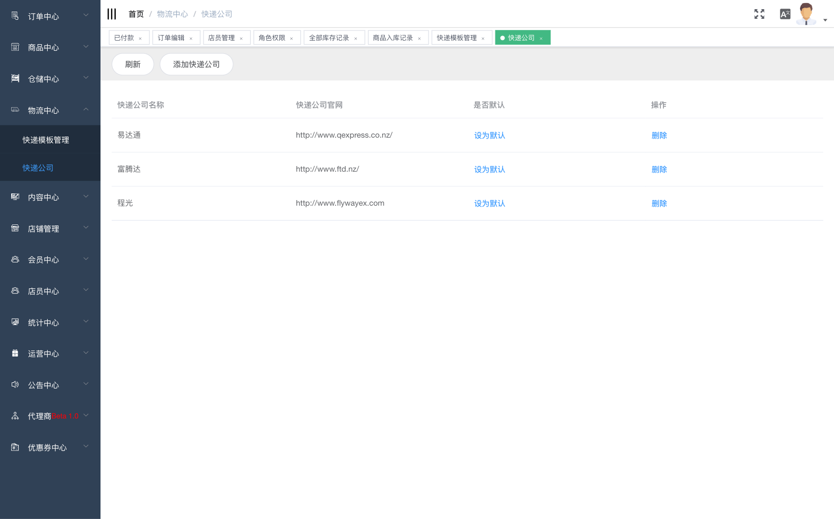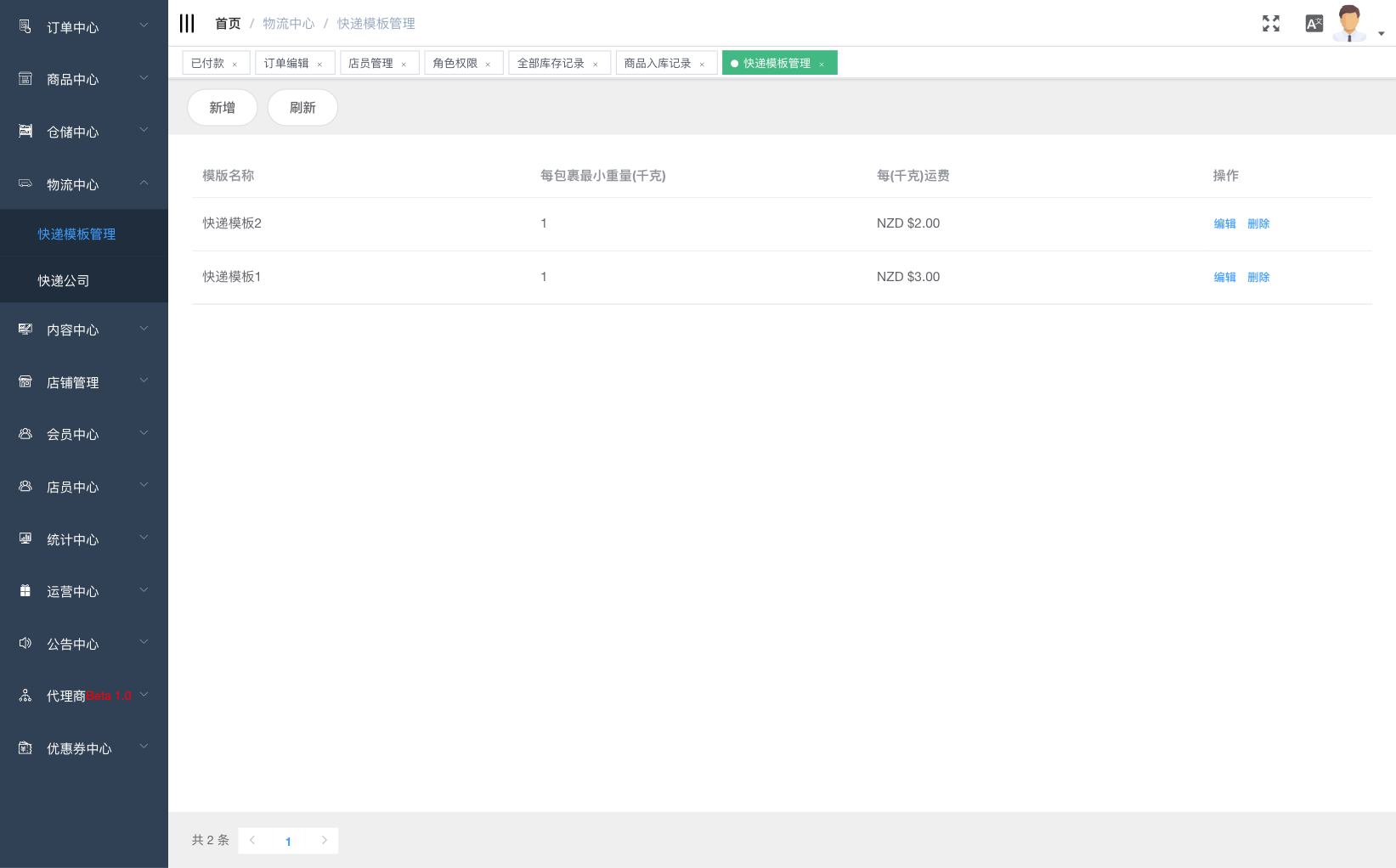 创建快递模板, 所有的订单都会按照创建的逻辑来收运费