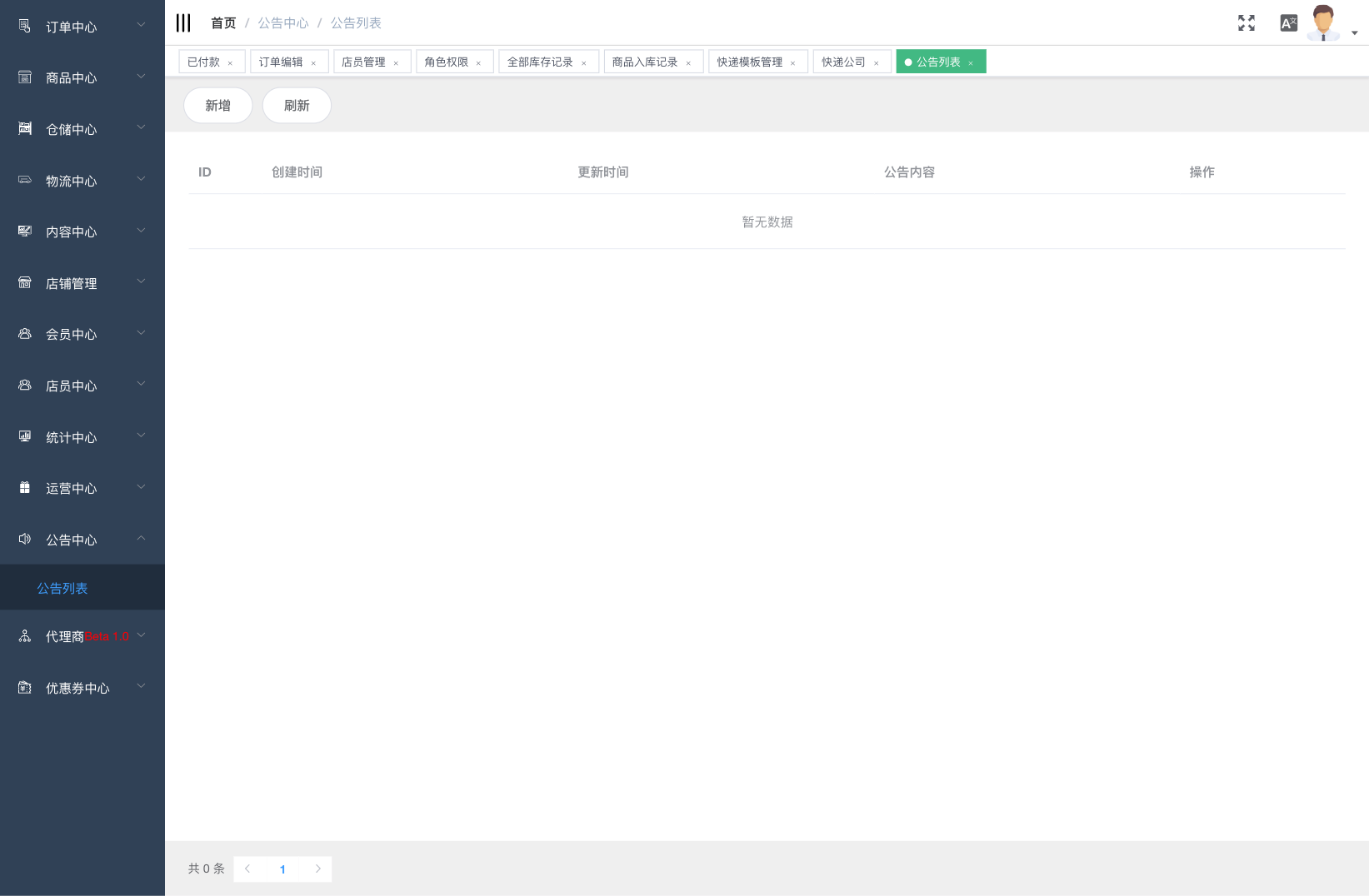 公告中心用来创建, 管理所有店铺公告. 公告将会显示在移动端店铺首页banner下面
