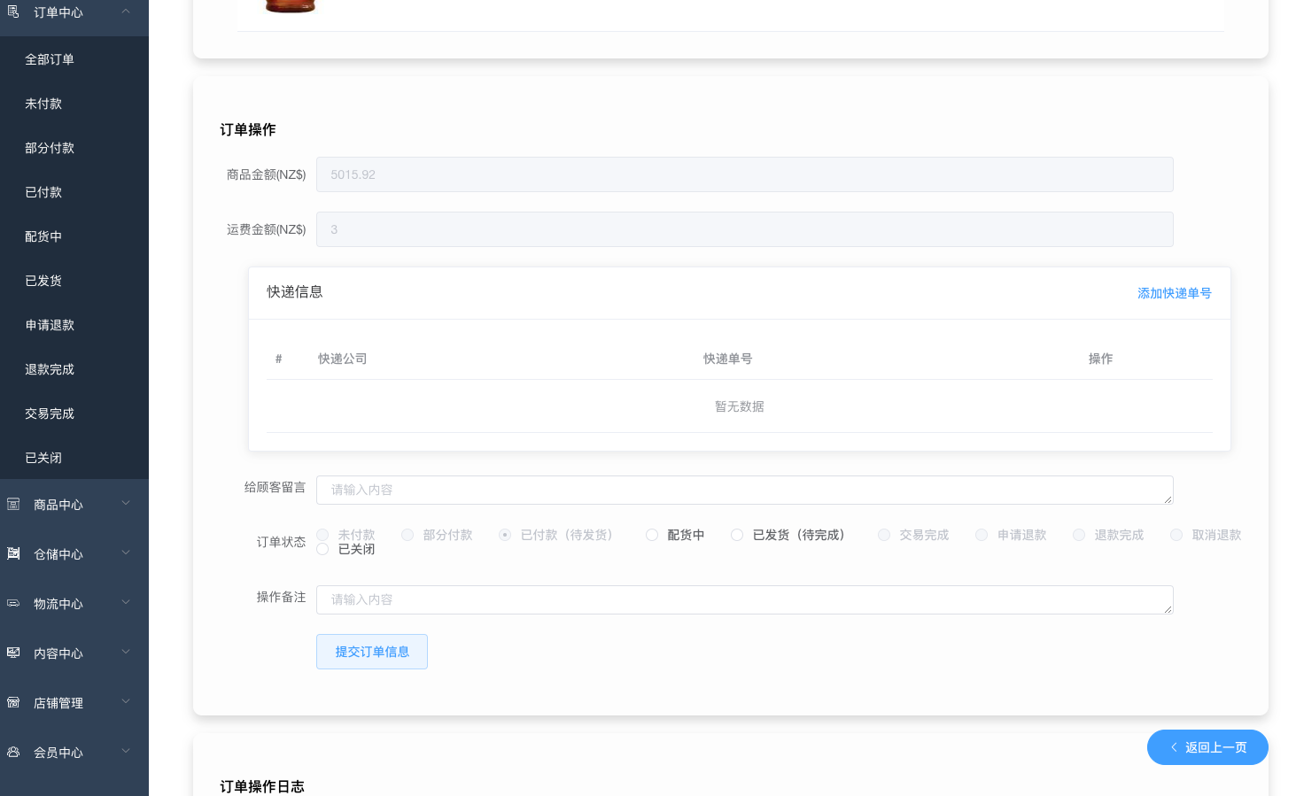 配货中:这个模块方便商家给每个订单配货和填写快递公司和单号