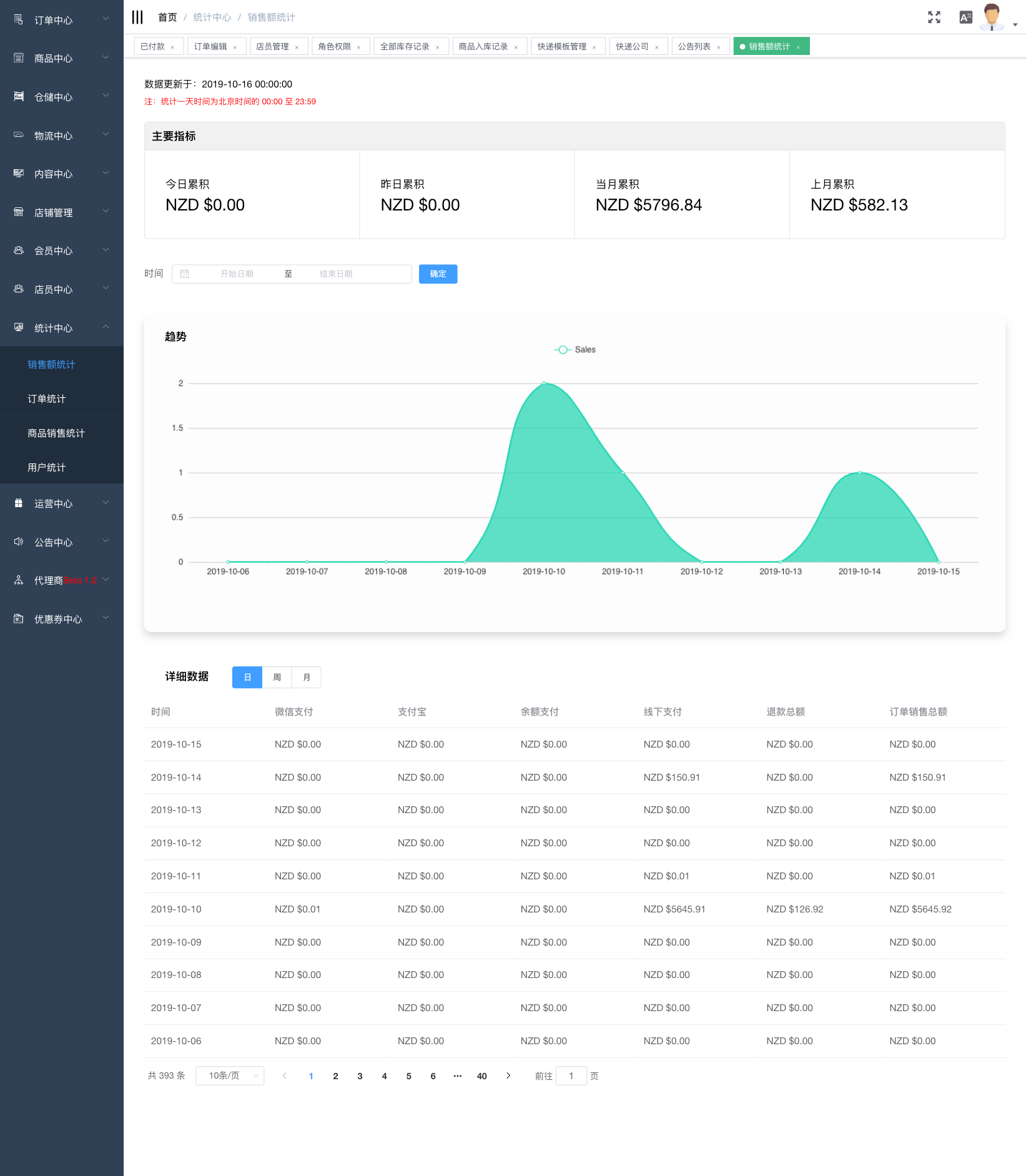 统计中心可以查看对应的统计, 来帮助您了解店铺的销售情况